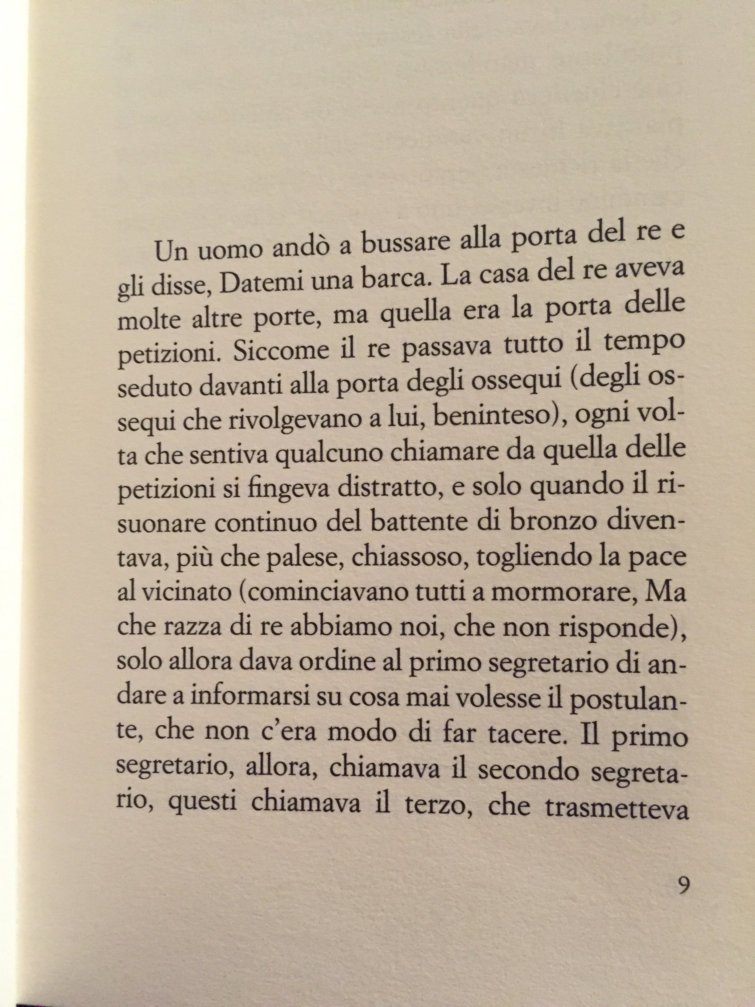 E in questo racconto in cui realtà e dimensione onirica si fondono c’è molto di “non detto”, eppure ogni elemento è perfettamente costruito per condurre a fondo e dare una stoccata al centro nevralgico delle emozioni. Esempio magistrale della punta dell’iceberg, come sosteneva Hemingway, del mondo sommerso che non si vede, il racconto è in perfetto equilibrio stilistico e tecnico. È presente la consueta punteggiatura (che poi è un’assenza) di Saramago, e potrete avere conferma della sua impronta stilistica leggendo un brano ad alta voce: non è necessario che vi sia la classica punteggiatura che scandisce il dialogo perché l’andamento è così ben congeniato, così “esatto”, che è impossibile non avere una immediata comprensione. È perfetto.